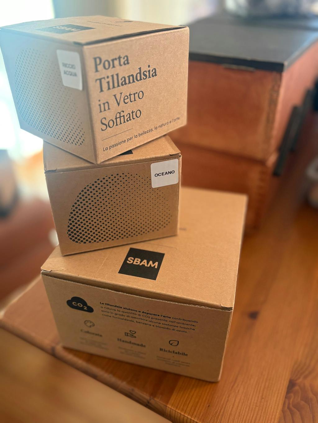 Ho preso4 confezioni con 3 tipologie di medusa e riccio ed ogni pezzo era confezionato con una scatola resistente con fiocco e decorazione. Imballate molto bene per proteggere il vetro, molto elegante da regalare singolarmente. In ogni sacchettino poi c’era una pianta e il suo deplian di spiegazione. Sono meravigliose 😍 amore a prima vista