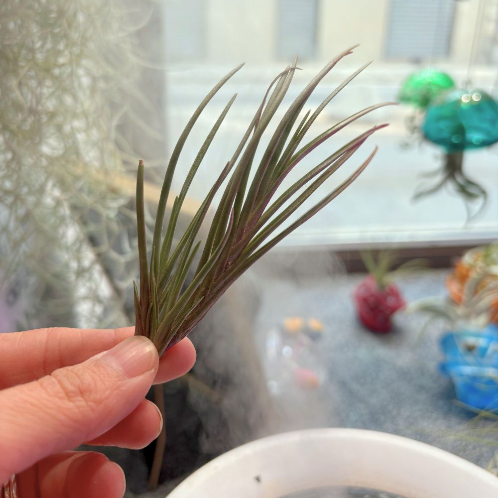 Ogni mattina, appena alzata, trovo la mia tillandsia ad aspettarmi per la doccetta quotidiana. Alla fine dell'irrorazione è ancora più bella, cosparsa di goccioline che brillano alla luce!