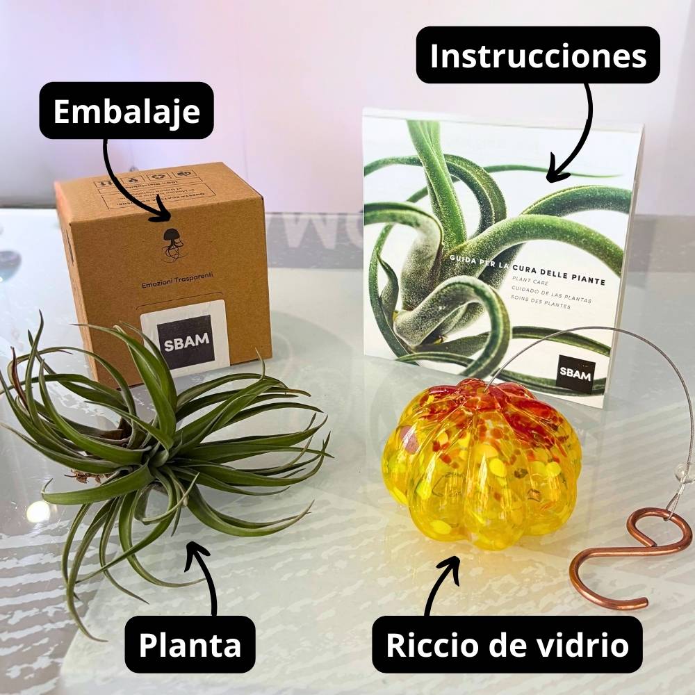 Ricevendo il RICCIO troverai il necessario per appenderlo e prendertene cura. All’interno della confezione, troverai una Tillandsia Adita (o similare) Large. RICCIO è cablato con cavo e gancio, pronto per essere appesa. Per aiutarti a mantenere la tua Tillandsia troverai anche dettagliate istruzioni per la cura della piantina.