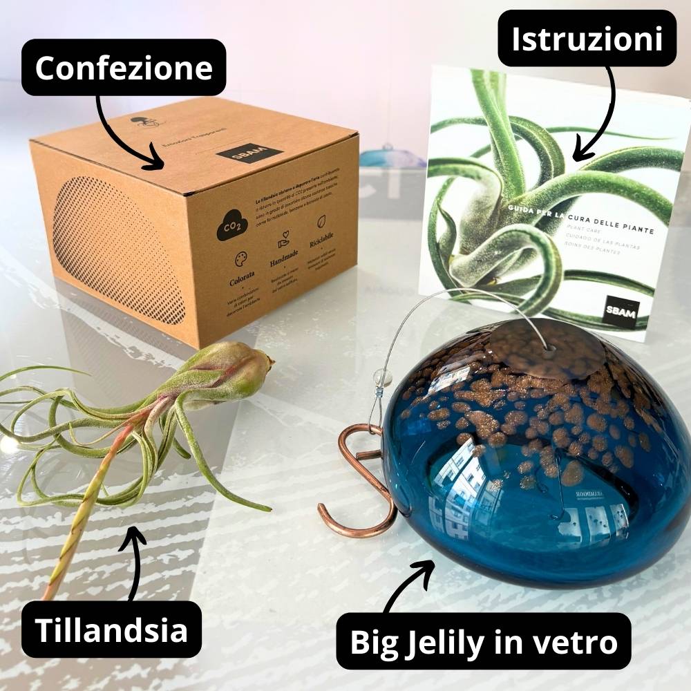 Ricevendo la BIG JELILY - Porta pianta aerea troverai il necessario per appenderla e prendertene cura. All’interno della confezione, troverai Una Tillandsia Caput Medusae ExtraLarge. La BIG JELILY - Porta pianta aerea è cablate con cavo e gancio, pronta per essere appesa. Per aiutarti a mantenere la tua Tillandsia troverai anche dettagliate istruzioni per la cura della piantina.